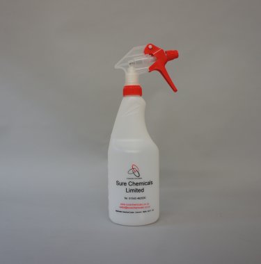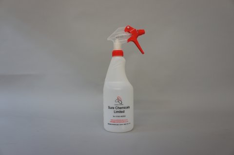 A 750 ml capacity trigger sprayer and bottle for diluting and applying water based products.
