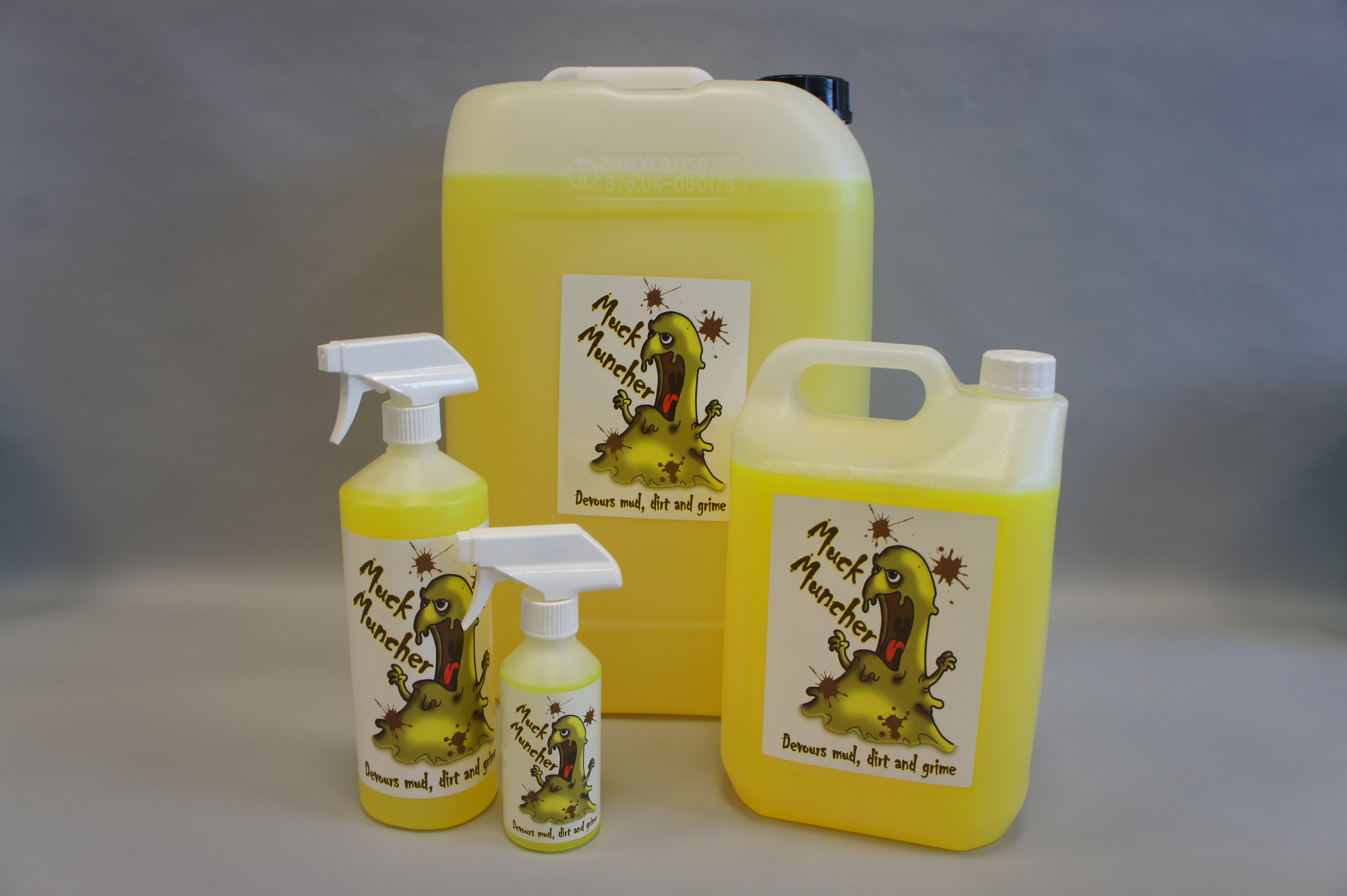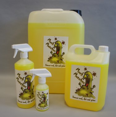 Muck Muncher devours mud, dirt and grime on bikes, quad bikes, motorbikes, cars and caravans and may be used for many other applications. Simply spray on and wash off to leave a clean, wax-like, water repellent finish. Check out the video of Muck Muncher in action‚ https://www.youtube.com/watch?v=SljqZcdr7lg ‚ ‚
