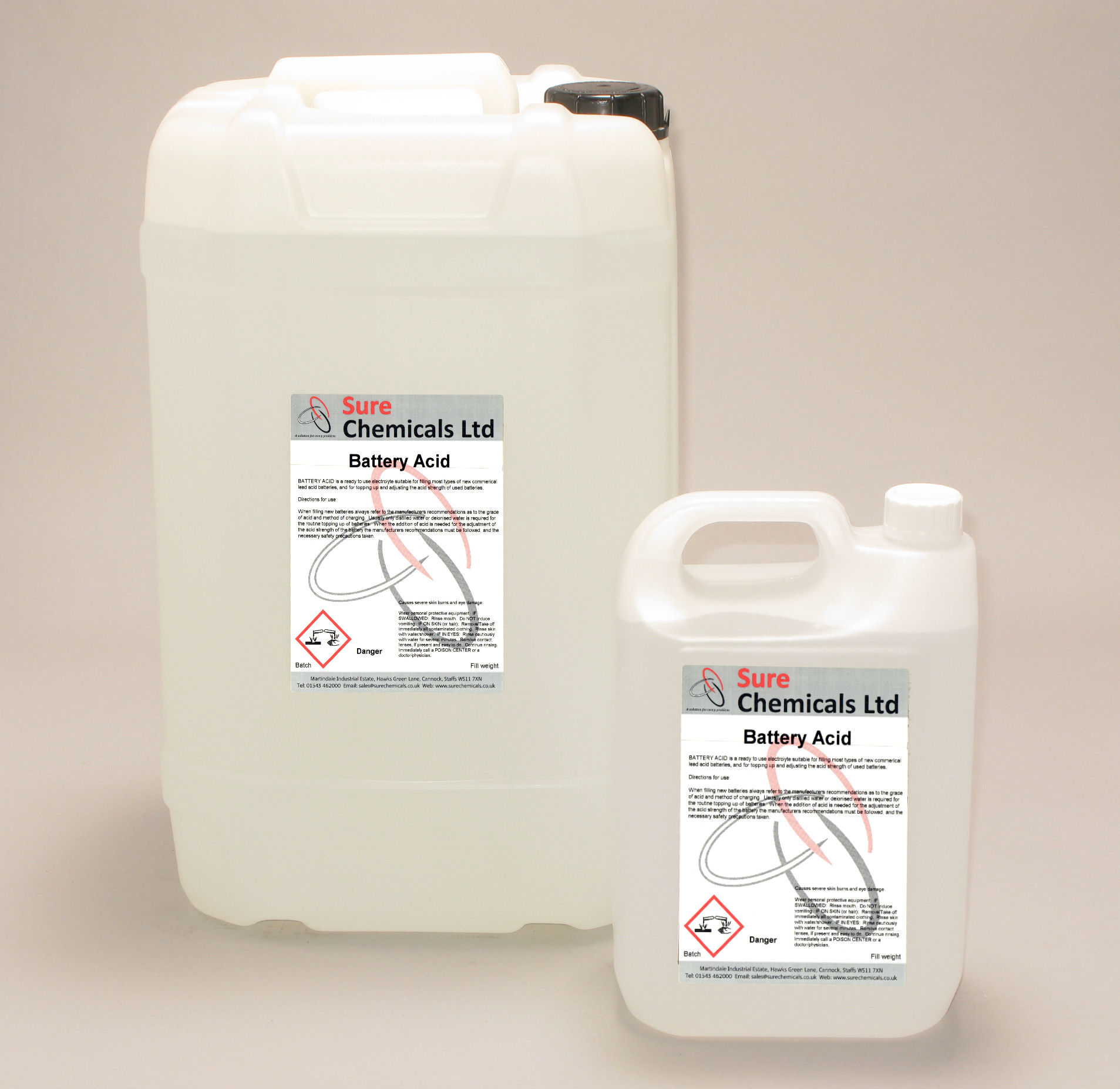 A ready to use battery acid with a specific gravity of 1.26-1.27. Used for filling most types of new commercial lead batteries. See Product Information sheet below for more information.?** This product can only be supplied business to business or to those with a valid EPP license. Please visit https://www.gov.uk/government/publications/supplying-explosives-precurso... more information **